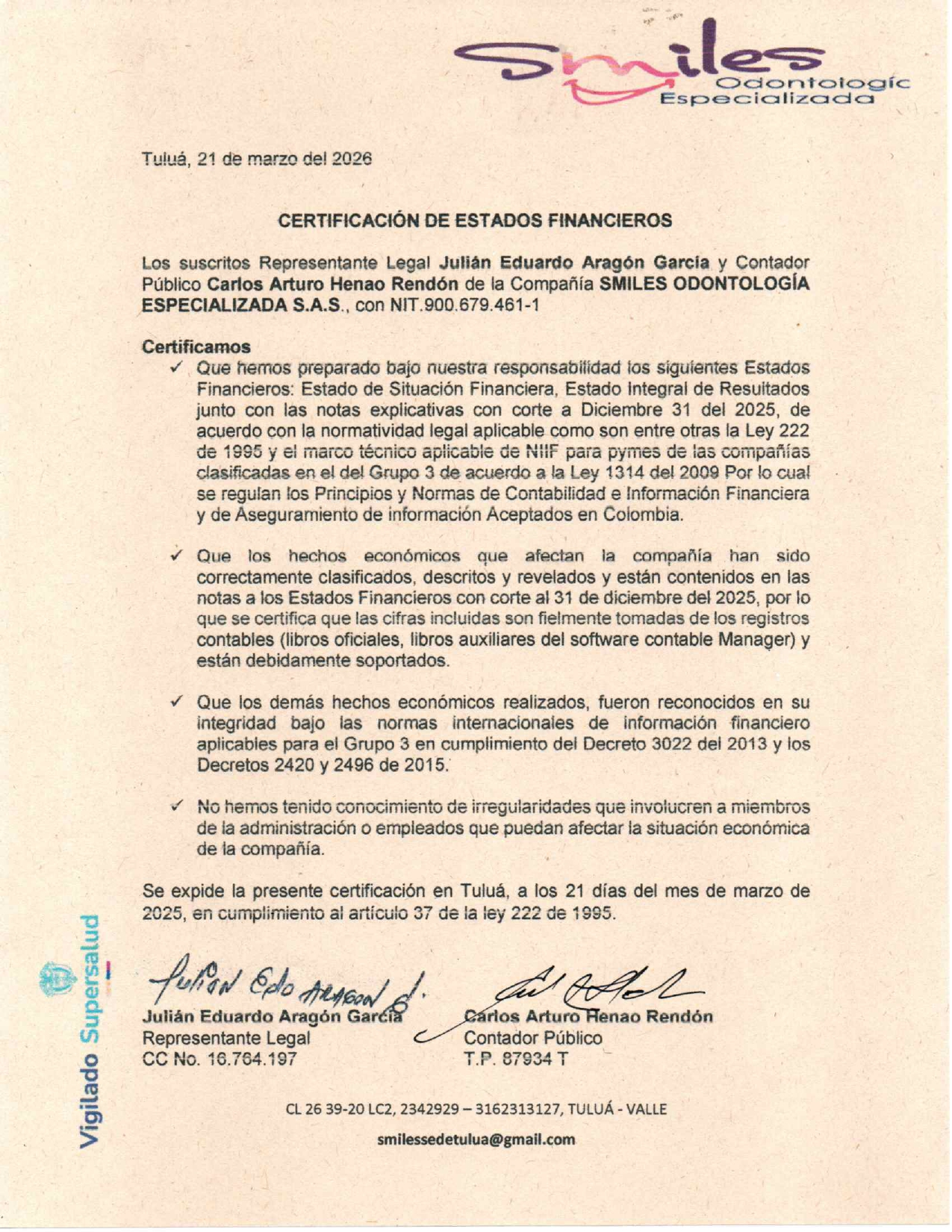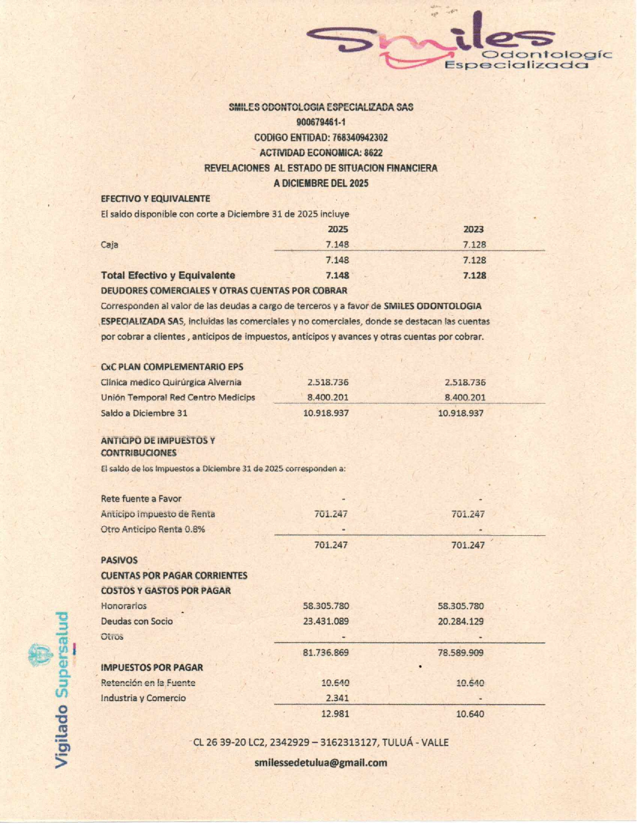 SMILES ODONTOLOGÍA ESPECIALIZADA S.A.S.